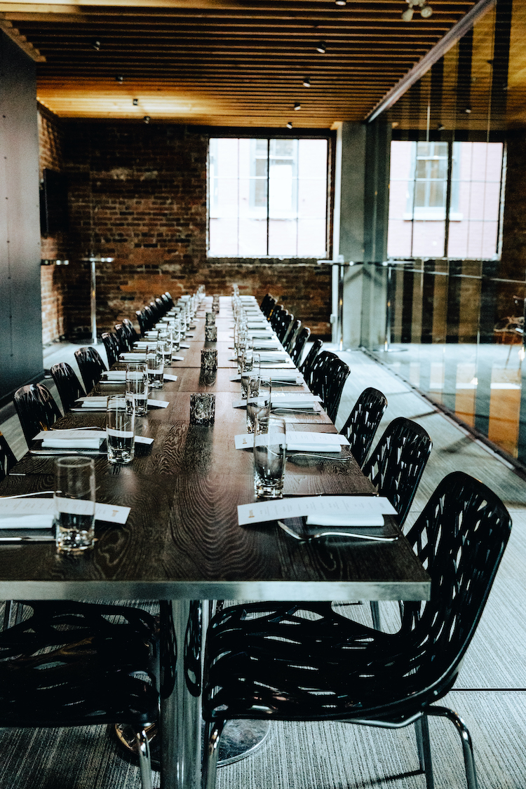 We also have our Half Room option, in which the space is divided in two using noise-reducing walls. Each room can accommodate up to 24 guests seated or up to 35 guests for a standing cocktail and canapé reception.